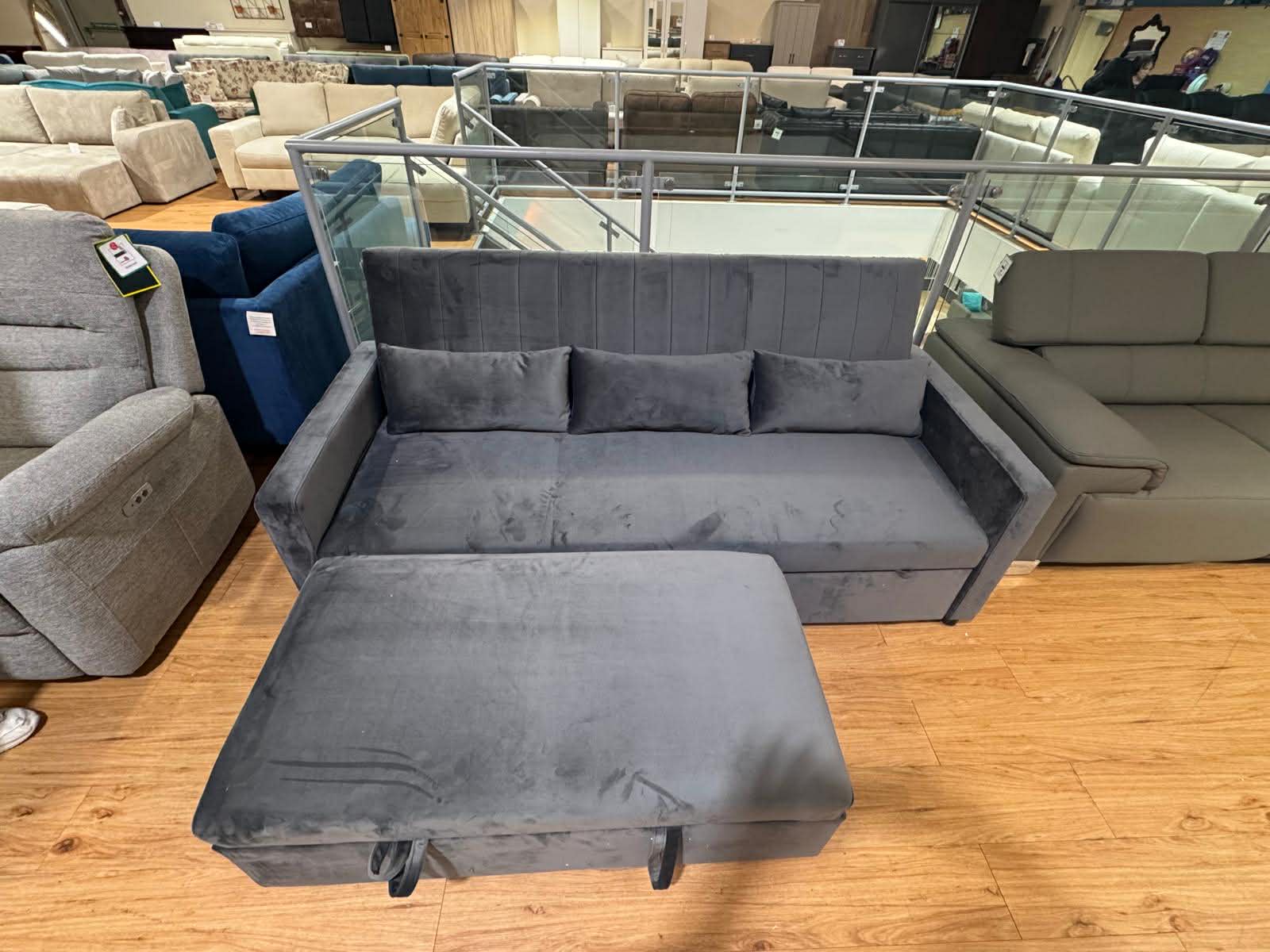 Sheena 3 Seat Grey Velvet Sofa Bed